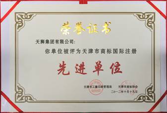 鉴于天狮集团长期以来对商标国际注册的重视,并在商标系统化管理方面取得的卓越成果。天津市工商行政管理局、天津市商标协会授予天狮集团“天津市商标国际注册先进单位” 称号,并颁发荣誉证书。